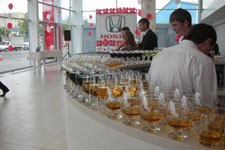 Совсем иной была концепция проведения мероприятия открытия авто-салона «Honda». Здесь витала атмосфера роскоши. Был заказан 10-килограммовый торт с эмблемой «Honda», также был предоставлен белоснежный рояль самый вкусный фуршет от «Art-Studio M» с разнообразием закусок и напитков.