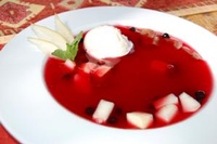 суп вишневый с фруктами и мороженым