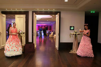 девушки-цветы, у которых платья сделаны полностью из цветов