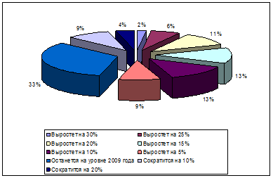 На вопрос, что ждет ивент-индустрию Украины в 2010 году, треть респондентов ответила, что показатели отрасли сохранятся на уровне 2009 года, и четверть респондентов предположила, что показатели вырастут в среднем на 15%.