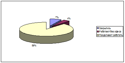 По итогам 2009 года (согласно базы 250 агентств), которым был предоставлен опросный лист, около 11% компаний либо закрылись, либо функционируют без офиса, остальные же 89% агентств продолжают работу с незначительными структурными изменениями.