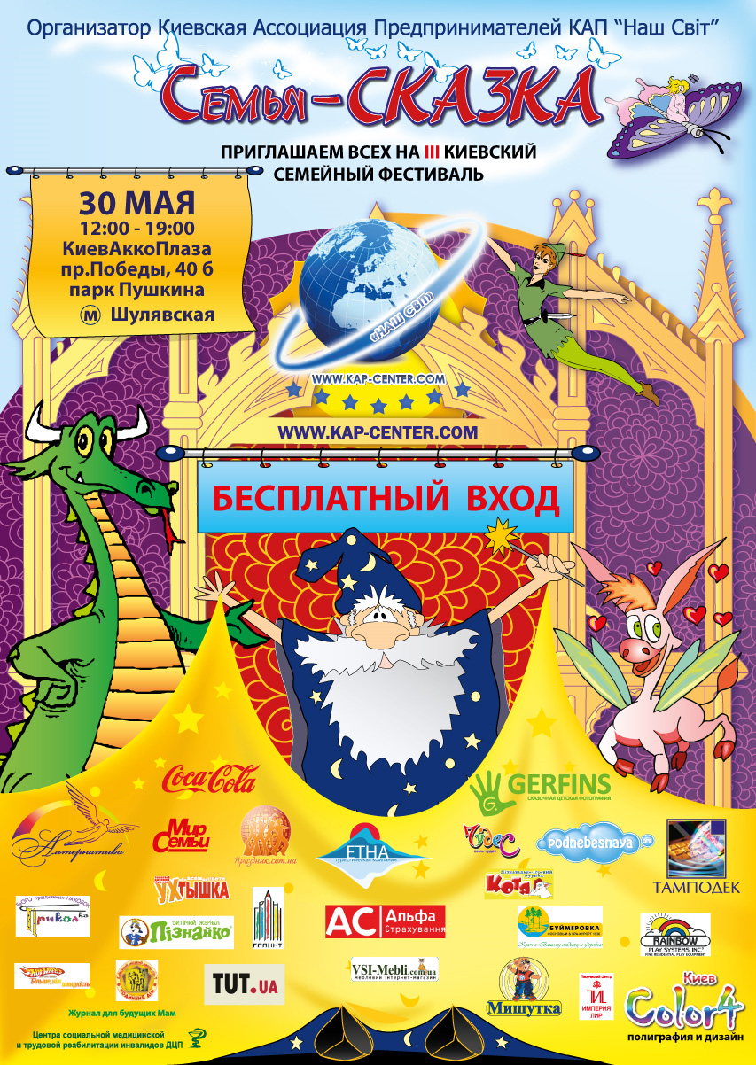 Запрошуємо Вас у Київську Асоціацію Підприємців «Наш Світ». Будемо раді бачити Вас на ІІІ Всеукраїнському Сімейному Фестивалі «Сімя – Казка - 2011» 28-го травня, який приурочено до Дня сімї та Дня Захисту дітей.