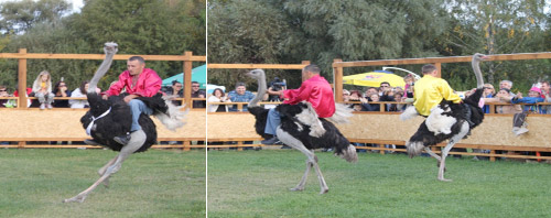 На мероприятии можно увидеть наездников на страусах, а также самому принять участие и ощутить невероятный прилив адреналина и незабываемых эмоций от катания на страусе.