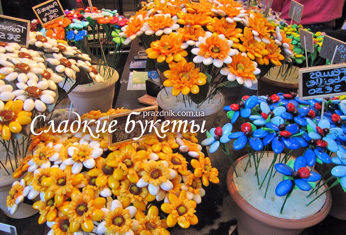 Прекрасная композиция на вид мало чем отличается от цветочной, но.… Вместо бутонов в ней – сладости на любой вкус. Да и цветовую гамму, а также способ оформления можно подобрать по определенным критериям – например, под наряд невесты.Есть праздники в жизни человека – неповторимые и самые яркие. Что еще так запомнится, как не рождение нового человека, выпускной в школе и институте, и, конечно же, свадьба? Как правило, это случается только раз и на всю жизнь. Поэтому и не странно, что подготовка к торжествам, а особенно к последнему занимает так много времени и приносит в дом немало хлопот – трепетных, радостных, но и волнующих.